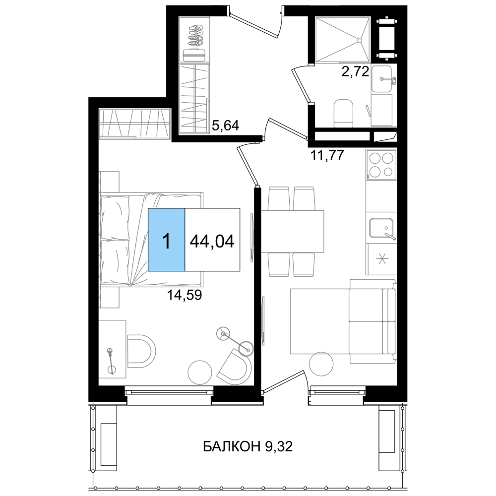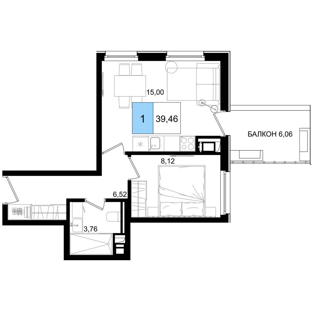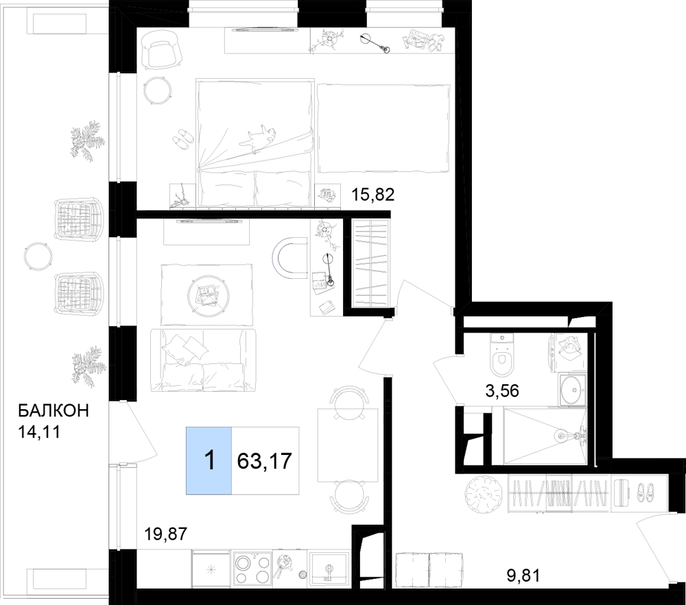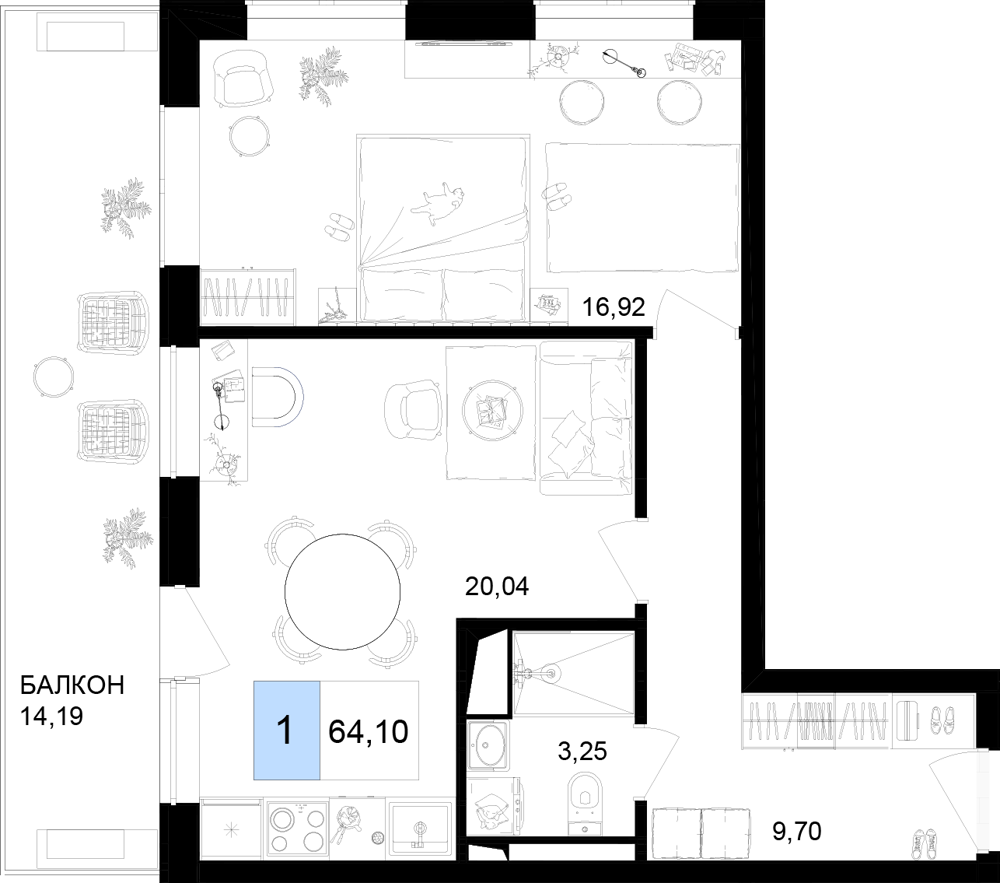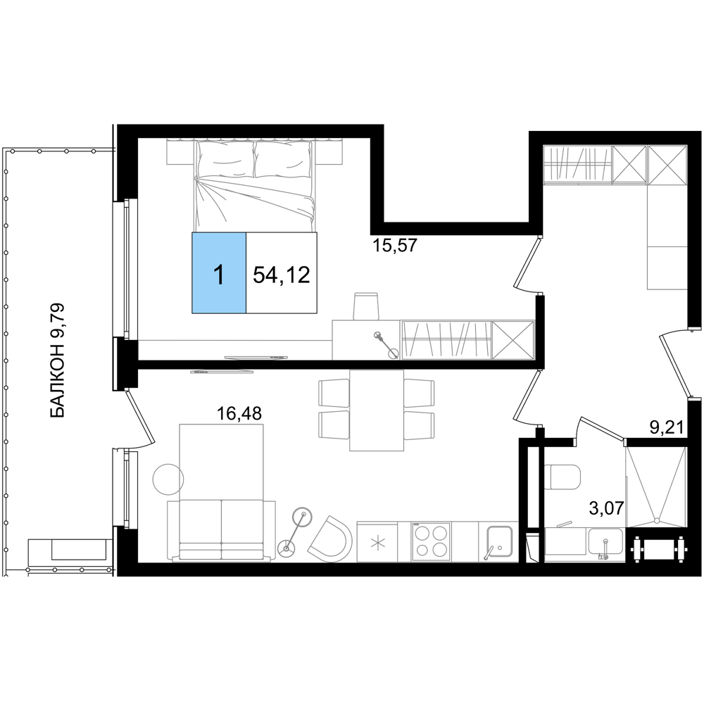 - Однокомнатные номера: Просторные варианты с отдельной спальней и угловой кухней-гостиной.