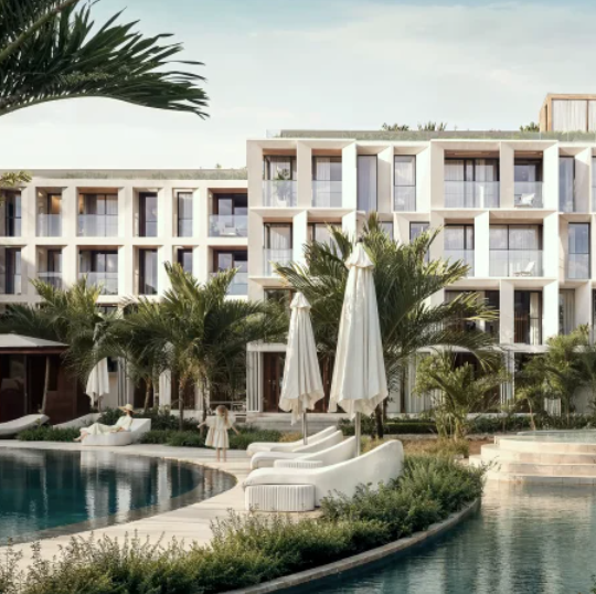 Концепция Hotel & Resort c инфраструктурой отеля 4*. В рамках строительства комплекса в Хосте вырастет целый микрорайон со школой на 800 мест, детским садом и собственным парком.