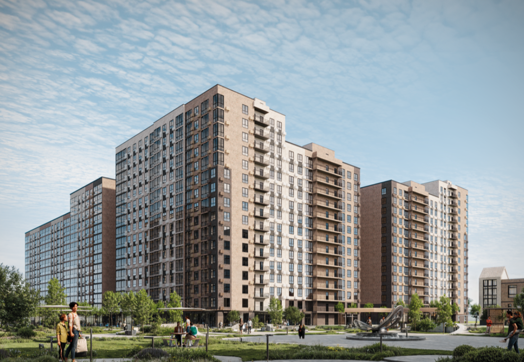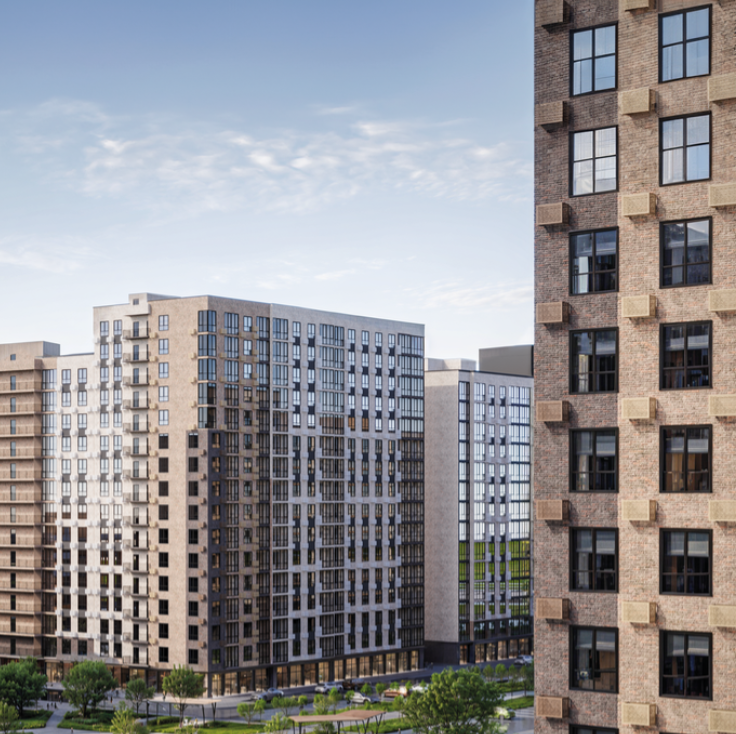 - Удобства: колясочные, лапомойки для питомцев, коммерческие помещения на первых этажах.