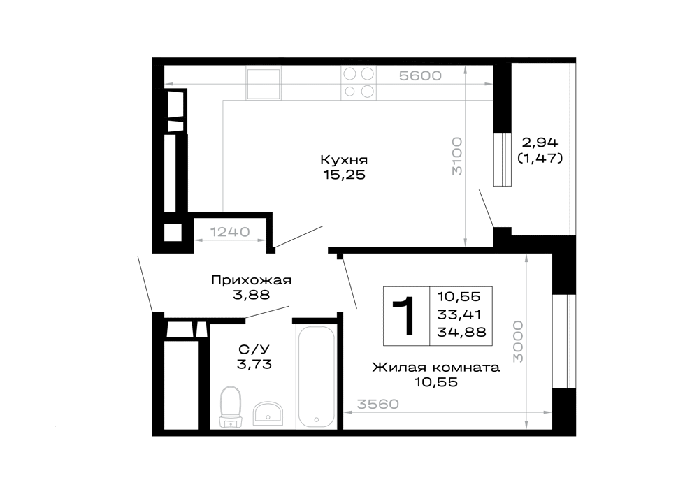- Однокомнатные: функциональные квартиры для одного человека или пары.