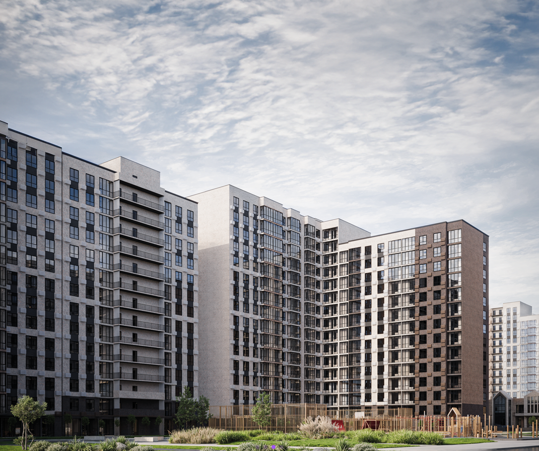 - Благоустроенная территория: прогулочные аллеи, зоны отдыха, детские и спортивные площадки, велодорожки.