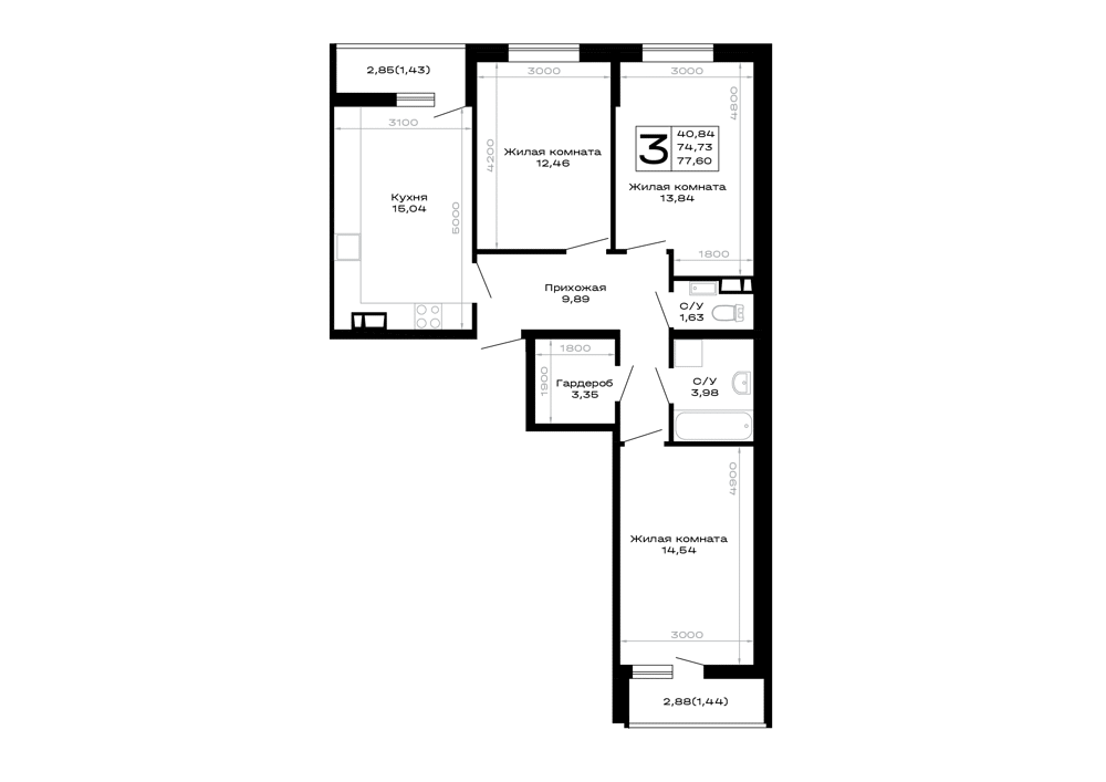 - Студии: компактные решения для комфортного проживания.