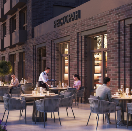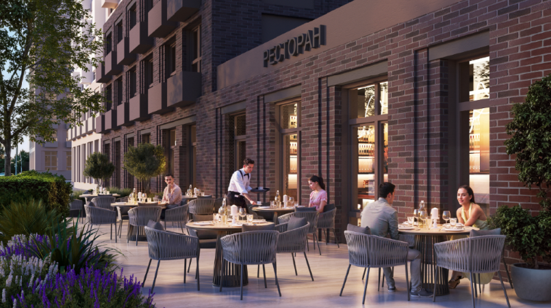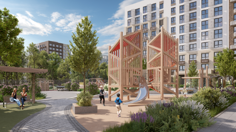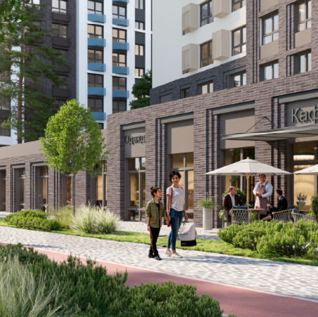 - Рекреационная: закрытые дворы без машин, детские и спортивные площадки, зоны для йоги, барбекю, городские огороды, прогулочная аллея с магазинами и ресторанами.