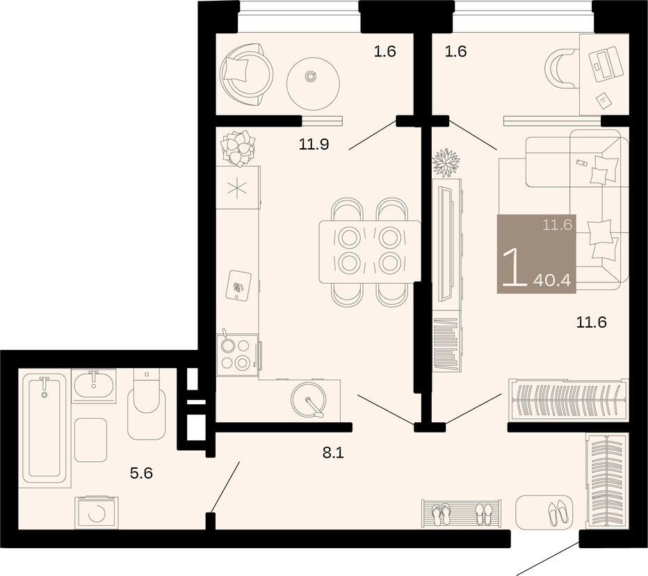 Категории квартир для покупки (в квартирах 1.1, 1.2):