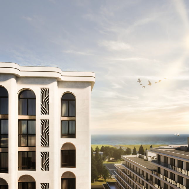 Роскошный отель Marine Garden Resort (Марина Гарден) представляет собой архитектурный ансамбль в стиле неоклассики. Белоснежный мрамор в сочетании с отголосками классики - это новое прочтение античных мотивов, которые воплотили архитекторы Marine Garden в Сочи. Лаконичность и одновременно парадность фасадов подчеркивают изысканность нового апарт отеля в Сочи. Особый акцент - полукруглые балконы. Из каждого апартаменты открывается великолепный вид на море.