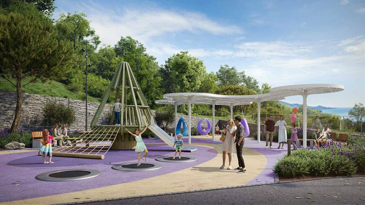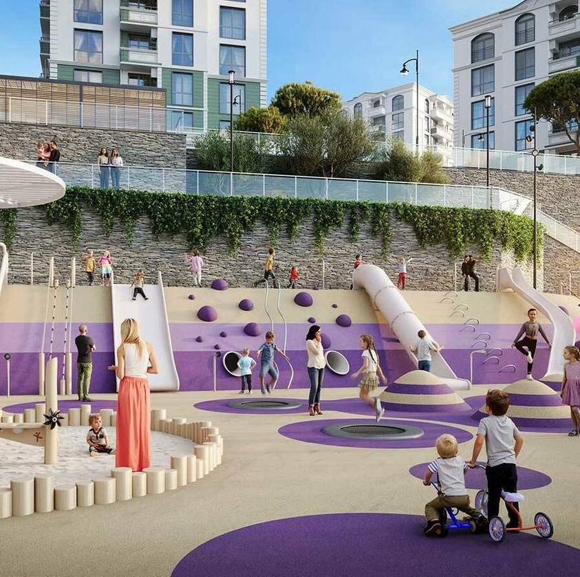 Концепция Hotel & Resort c инфраструктурой отеля 4*. В рамках строительства комплекса в Хосте вырастет целый микрорайон со школой на 800 мест, детским садом и собственным парком.