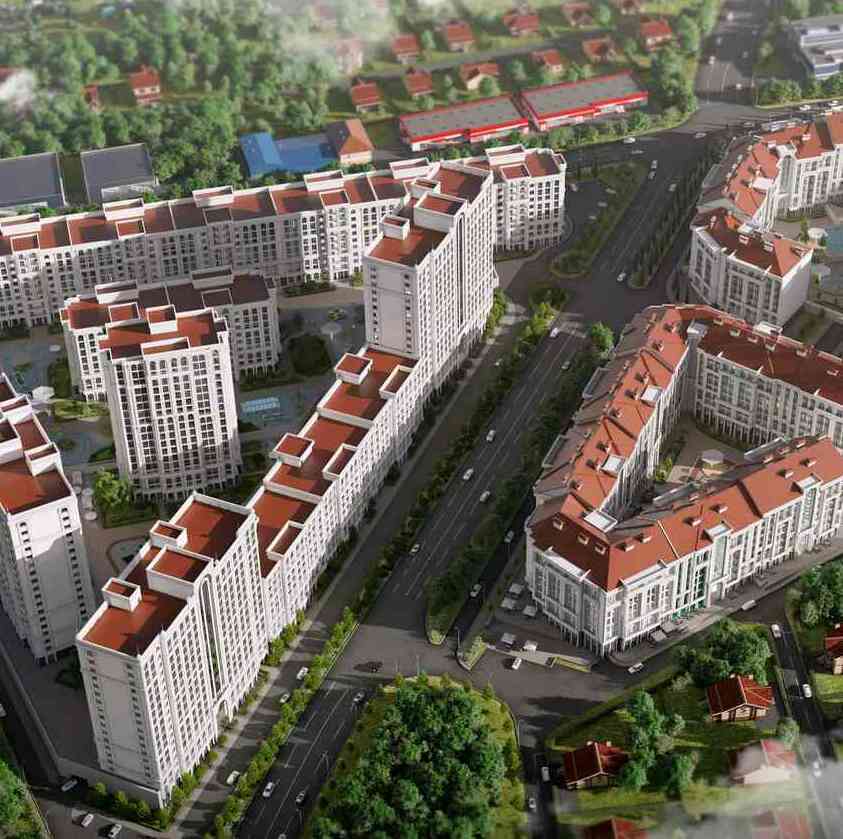 - Развитая социальная и транспортная инфраструктура: В пешей доступности от комплекса расположены два детских сада (на 200 и 450 мест) и школа на 1750 мест. Центр города находится в 5 минутах езды на автомобиле.