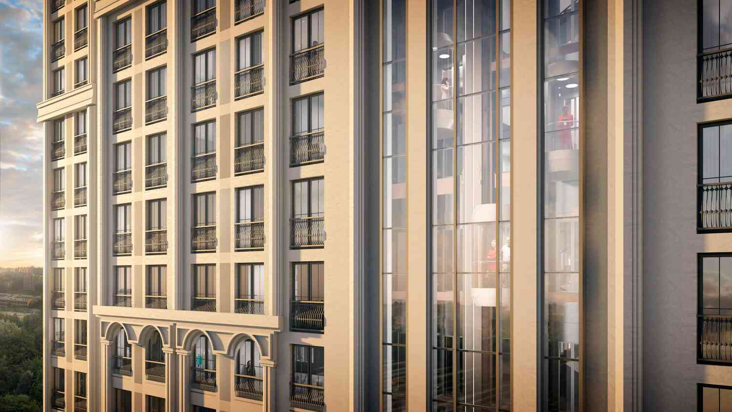 - Премиальная концепция: Закрытая территория, дизайнерские входные группы, панорамные лифты с видами и продуманная архитектура создают образ элитного жилья, что напрямую влияет на стоимость квадратного метра и потенциал его роста.