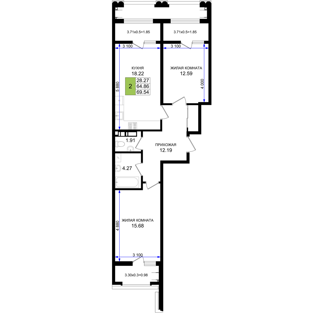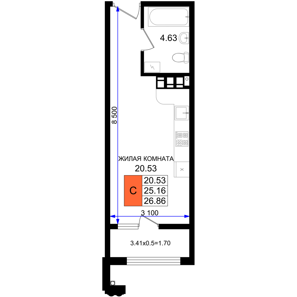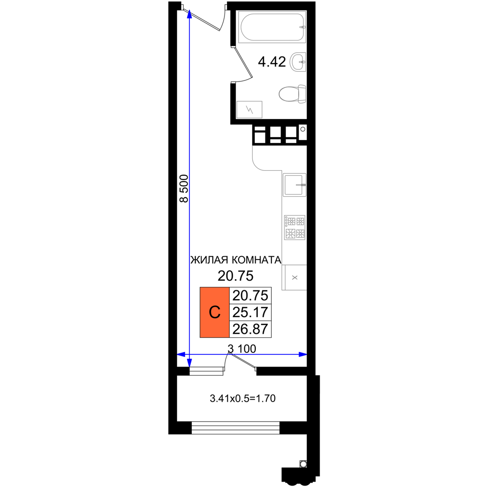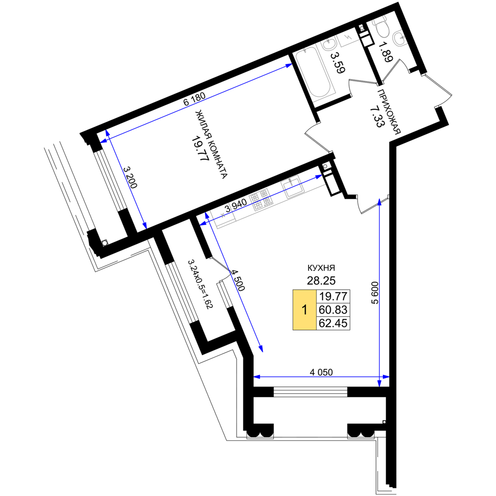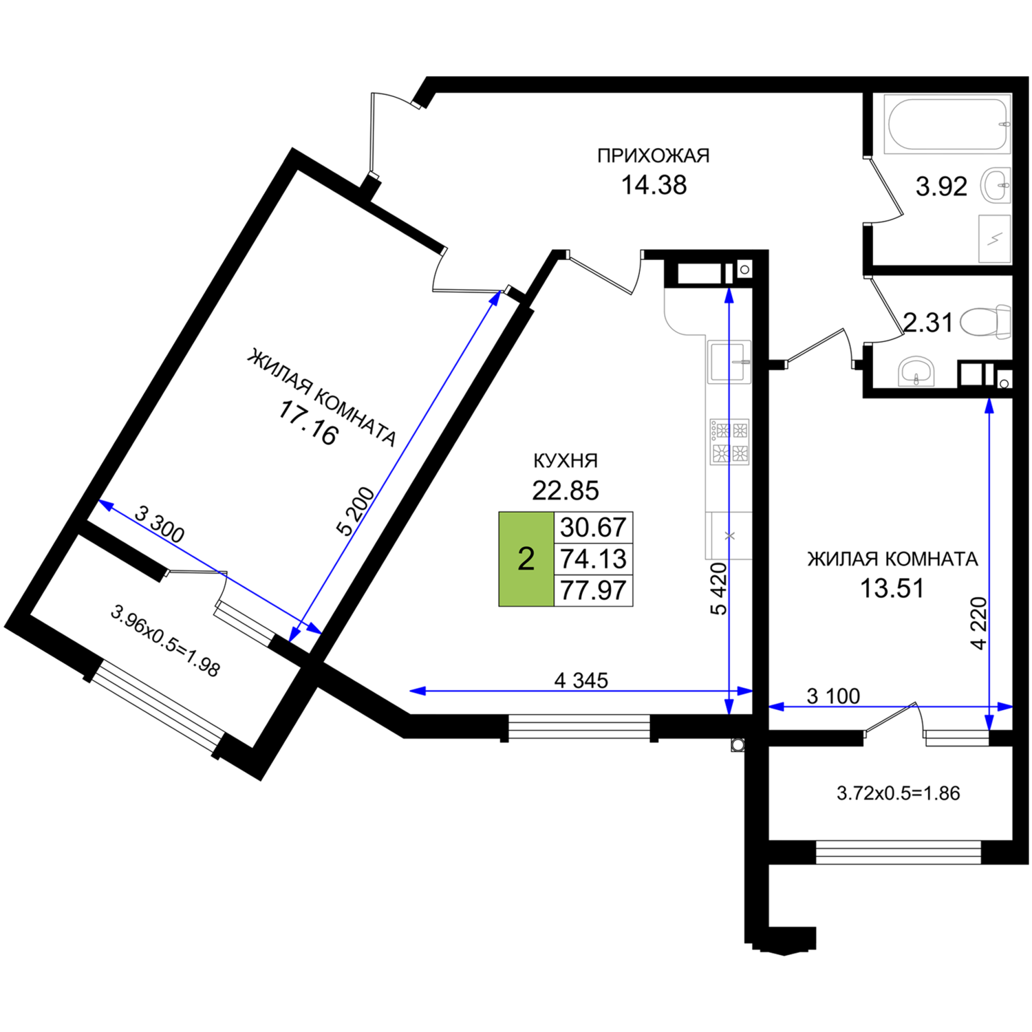 - Планировки: Широкий выбор планировок: квартиры-студии (от 25 м²), однокомнатные (от 38.97 м² до 54.15 м²) и двухкомнатные (от 62.54 м² до 77.30 м²).