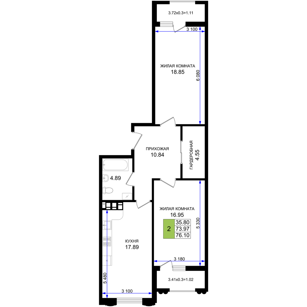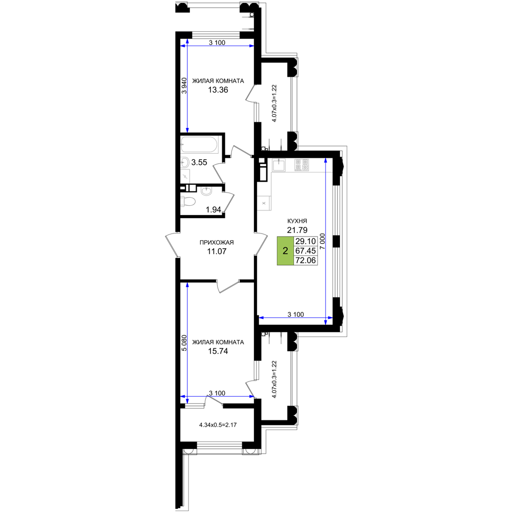 - Особенности: Во всех квартирах установлено витражное остекление, наполняющее пространство светом. Высота потолков составляет 2.85 м. Отделка — качественная предчистовая (White Box).